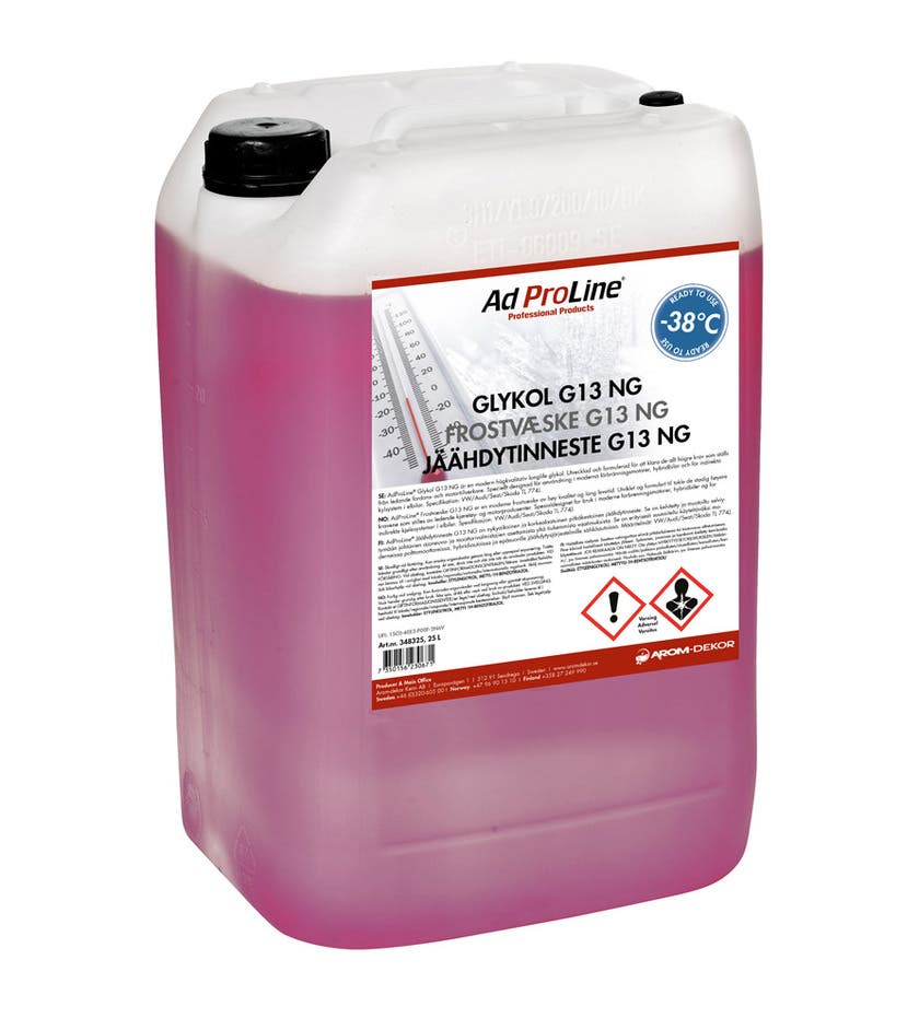 AdProLine® Glykol 774F Röd NG färdigblandad är en modern högkvalitativ longlife glykol. Nyutvecklad och formulerad för att klara de allt högre krav som ställs från ledande fordons- och motortillverkare. Speciellt designad för användning i moderna förbränningsmotorer, hybridbilar och för indirekta kylsystem i elbilar. Skyddar mot korrosion, frysning, kokning samt motverkar uppkomsten av kavitation. AdProLine® Glykol 774F Röd NG färdigblandad är kompatibel med de flesta andra kylvätskor baserade på etylenglykol.