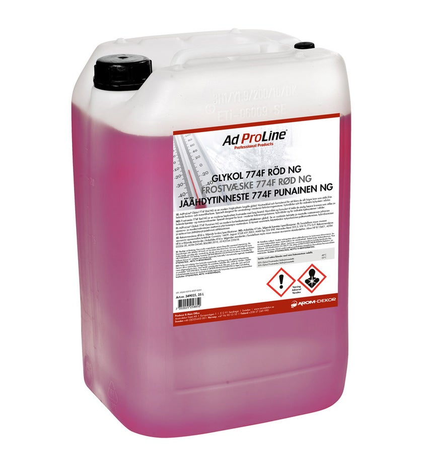 - AdProLine® Glykol 774F Röd NG är kompatibel med de flesta andra kylvätskor baserade på etylenglykol.