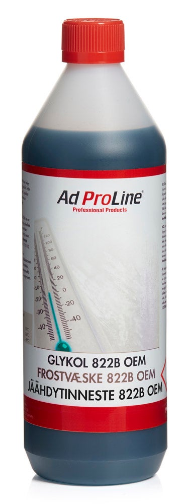 AdProLine® Glykol 822B OEM är en högkvalitativ longlife glykol. Utvecklad och formulerad för att klara de höga krav som ställs på en modern kylarglykol. Glykol 822B OEM är en specialglykol som uppfyller kraven i specifikation Peugeot-Citroën PSA B 71 5110. För bästa funktion rekommenderas spädning med avjoniserat eller destillerat vatten. För ett fullgott korrosionsskydd och minimera risken för utfällningar rekommenderas att endast använda Glykol 822B OEM. Glykol 822B OEM skyddar mot korrosion, frysning och kokning samt motverkar uppkomsten av kavitation.