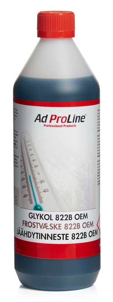 AdProLine® Glykol 822B OEM består av monoetylenglykol och ett inhi-bitor- paket baserat på en kombination av OAT-tekniken (Organic Acid Technology) och molybdat. OAT innebär innebär ett långtidsverkande korrosionsskydd då endast en liten del av inhibitorerna förbrukas. Innehåller ej nitriter, aminer, fosfater, silikater eller borater.