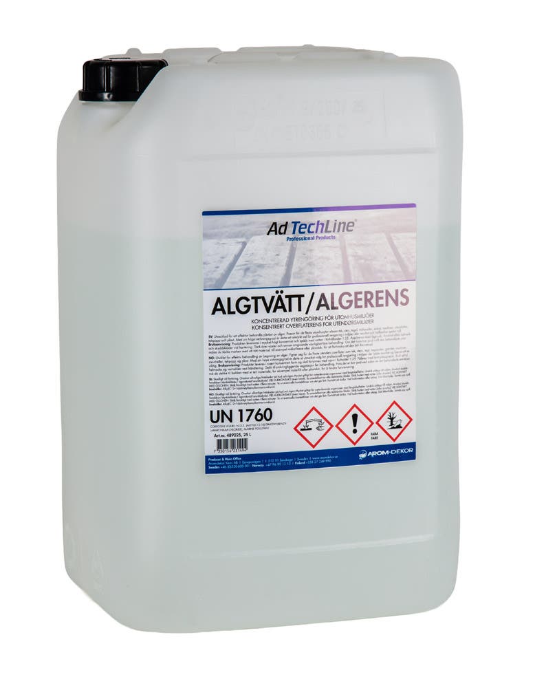 Utvecklad för att effektivt behandla påväxt av alger. Passar för de flesta utomhusytor såsom tak, sten, tegel, träfasader, staket, markiser, stenplattor, takpapp och plast. Med sin höga verkningsgrad är detta ett utmärkt val för professionell rengöring i miljöer där resultat och hållbarhet spelar roll.