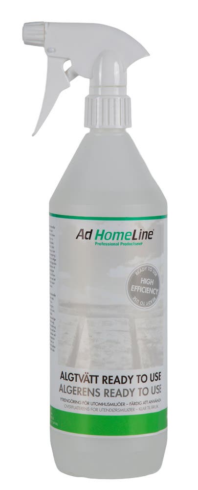 En effektiv rengöringsprodukt som behandlar påväxt av alger på ett enkelt och säkert sätt. Produkten är klar att användas direkt och kräver ingen spädning. Passar för de flesta typer av utomhusytor såsom tak, sten, tegel, träfasader, staket, markiser, stenplattor, takpapp och plast. Tack vare sin färdigblandade formula är den ett praktiskt och effektivt val för smidig rengöring i miljöer där både resultat och hållbarhet är viktiga faktorer.