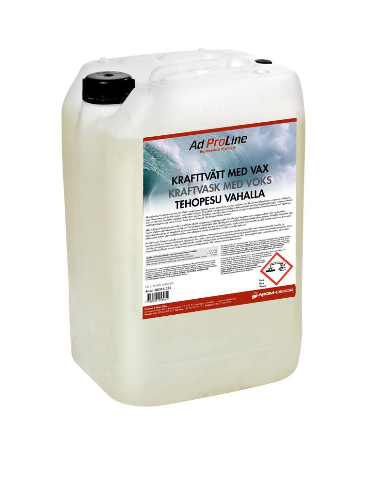 AdProLine® Krafttvätt med vax är ett effektiv rengöringsmedel för personbilar och tunga fordon som lastbilar och maskiner. Klarar besvärliga typer av vägsmuts och avlägsnar även oljerik smuts och fett från fordon, maskindelar och golv.