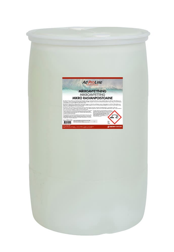 Produkten innehåller emulgatorer som på ett unikt sätt binder lösningsmedlet till vatten, vilket gör att man får både den alkaliska effekten och petroleumets effekt. Med AdProLine® Mikroavfettning kan du ersätta traditionella kallavfettningsmedel, produkten är därför speciellt lämplig när man bara vill använda en produkt.