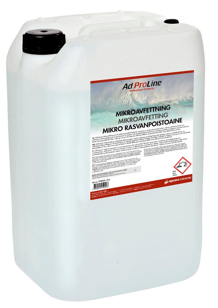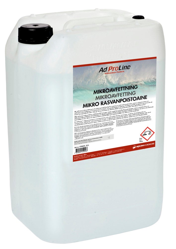 AdProLine® Mikoravfettning ett avfettningsmedel lämpligt för rengöring av starkt nedsmutsade fordon, motorer, verkstadsmaskiner eller liknande. AdProLine®Mikroavfettning är en kombination av alkalisk- och petroleumbaserad avfettning.