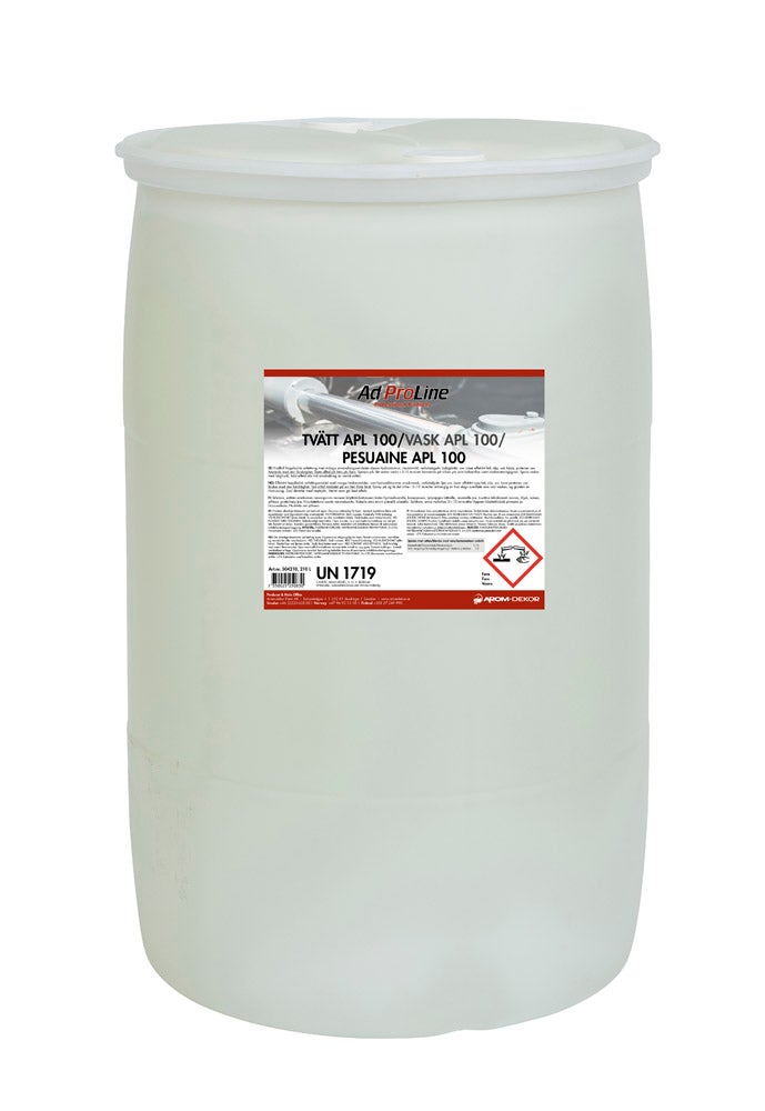 AdProLine® Tvätt APL 100 är en kraftfull högalkalisk avfettning med många användningsområden såsom hydraularmar, maskintvätt, verkstadsgolv, ladugårdar, osv. Löser effektivt fett, olja, sot, kåda, proteiner osv. Mycket kraftfullt alkaliskt avfettningsmedel med högt pH-värde. Fungerar utmärkt även på våta ytor. Innehåller biologiskt nedbrytbara tensider.