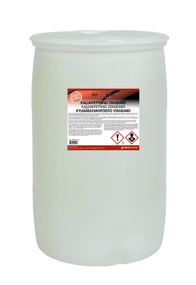 AdProLine® Kallavfettning Standard är ett emulgerande kallavfettningsmedel med mycket bra lösningsförmåga. Lämplig för rengöring av fordon och maskindelar nedsmutsade av exempelvis asfalt, tjära och fett. AdProLine® Kallavfettning Standard innehåller ett effektivt emulgatorpaket vilket ger produkten en extremt bra förmåga att väta på olika ytor och därmed kraftigt öka lösningsförmågan. Produkten är lågaromatisk vilket innebär att den endast har en liten egendoft som medför en bättre arbetsmiljö för brukaren. Genom den emulgerande egenskapen blir sköljningen med vatten mer effektiv.