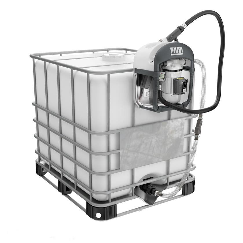 Självsugande membranpump, vilket innebär att den inte behöver fyllas med vätska före start. Pumpen har utformats för att enkelt kunna flyttas från en IBC till en annan. Alla komponenter i och runt pumpen är anpassade för att tåla AdBlue. Pumpen är försedd med automatiskt pistolhandtag som slår av när tanken är full. Den är också utrustad med flödesmätare. Pistolhandtaget är konstruerat så att pipen går av vid kraftiga ryck i slangen. Tack vare denna konstruktion kan man byta pip istället för att kassera hela handtaget. Alla komponenter i och runt pumpen är anpassade för att tåla urea.
