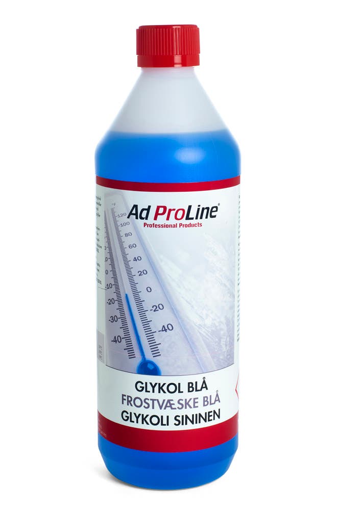 AdProLine® Glykol Blå är baserad på monoetylenglykol och ett inhibitorpaket utan nitriter, aminer och fosfater. Kontrollera glykolens frysskydd varje höst och efterfyll vid behov. Etylenglykol är giftig och får ej förtäras. Den är biologiskt nedbrytbar och utsläpp av mindre mängder orsakar ej störningar i reningsverkens nedbrytningssteg.